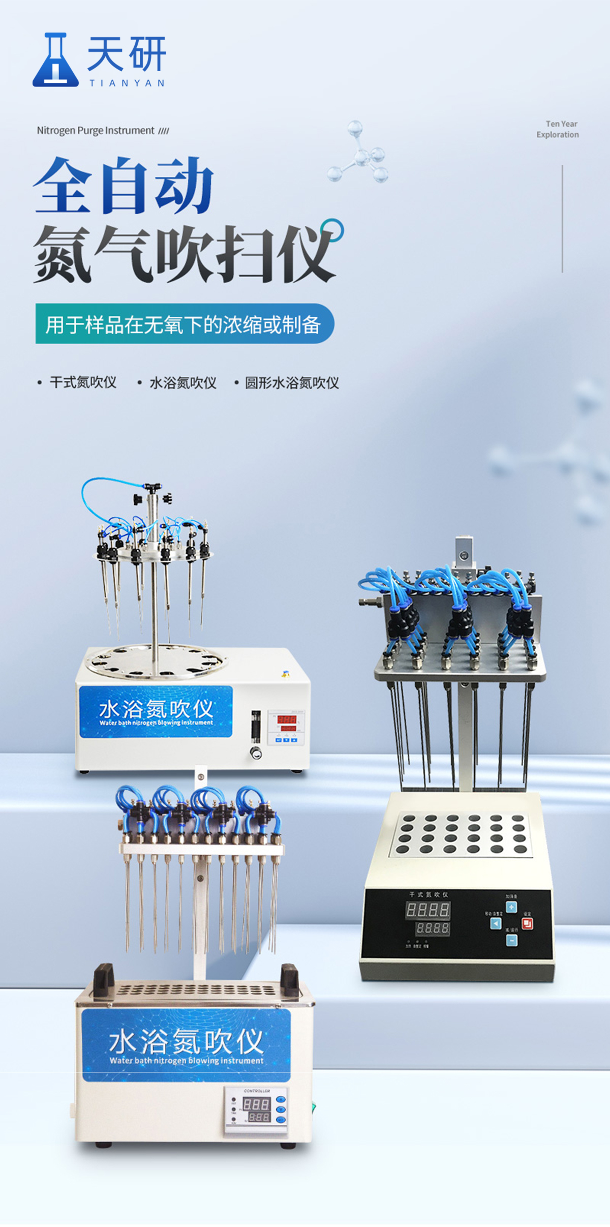 水浴氮吹儀采用吹掃捕集技術,同時可對樣品進行控溫加熱,利用氮氣等惰性氣體快速、可控、連續地吹到樣品表面來達到樣品溶液快速無氧濃縮。該方法具有省時、便捷、準確的特點。廣泛用于食品安全、醫藥、農藥殘留檢測、臨床藥代等領域。