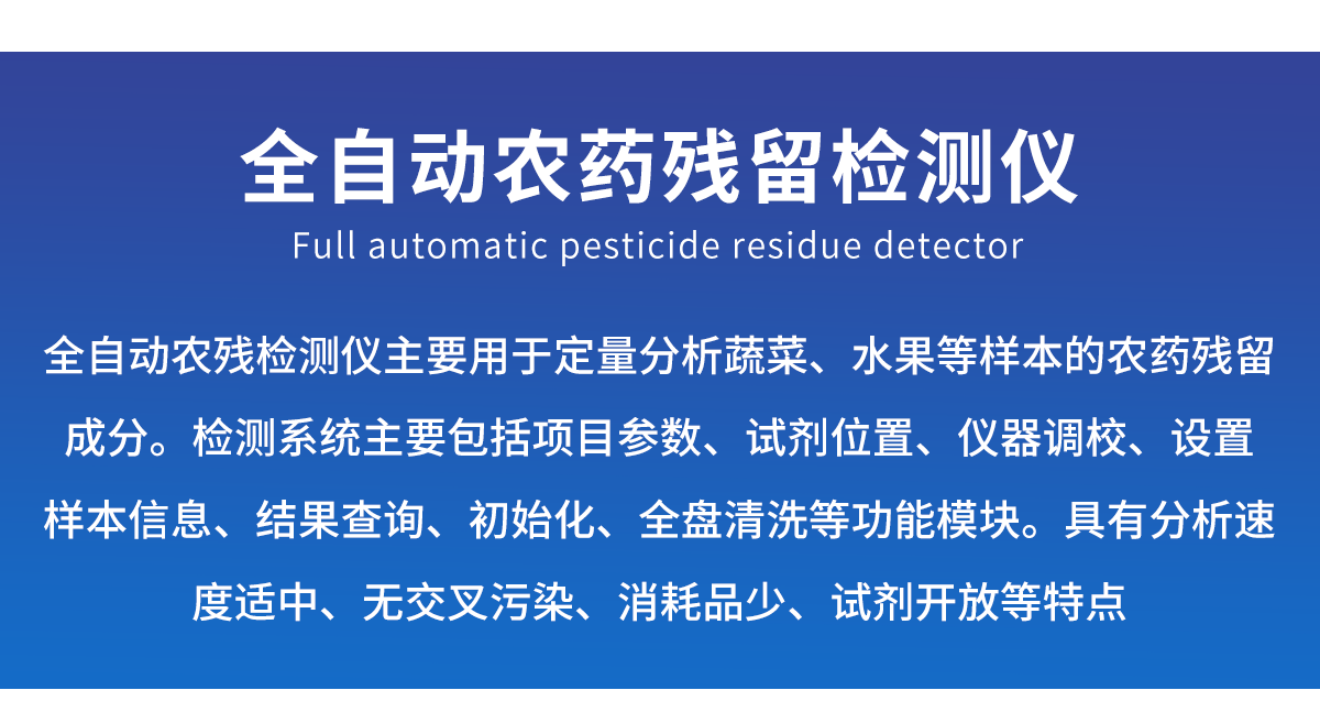 產(chǎn)品詳情:產(chǎn)品簡介: 天研全自動(dòng)農(nóng)藥殘留檢測儀YT-NY2000,檢測標(biāo)準(zhǔn):依據(jù)國家標(biāo)準(zhǔn)方法(GB/T5009.199-2003)以及世界衛(wèi)生組織WHO、世界糧農(nóng)組織FAO殘留農(nóng)藥檢測標(biāo)準(zhǔn)、世界環(huán)境保護(hù)局EPA參照攝入量等要求來設(shè)計(jì)。采用酶抑制率比色法對水果、蔬菜等農(nóng)林產(chǎn)品中有機(jī)磷和氨基甲酸酯類農(nóng)藥含量進(jìn)行快速準(zhǔn)確的檢測。 廣