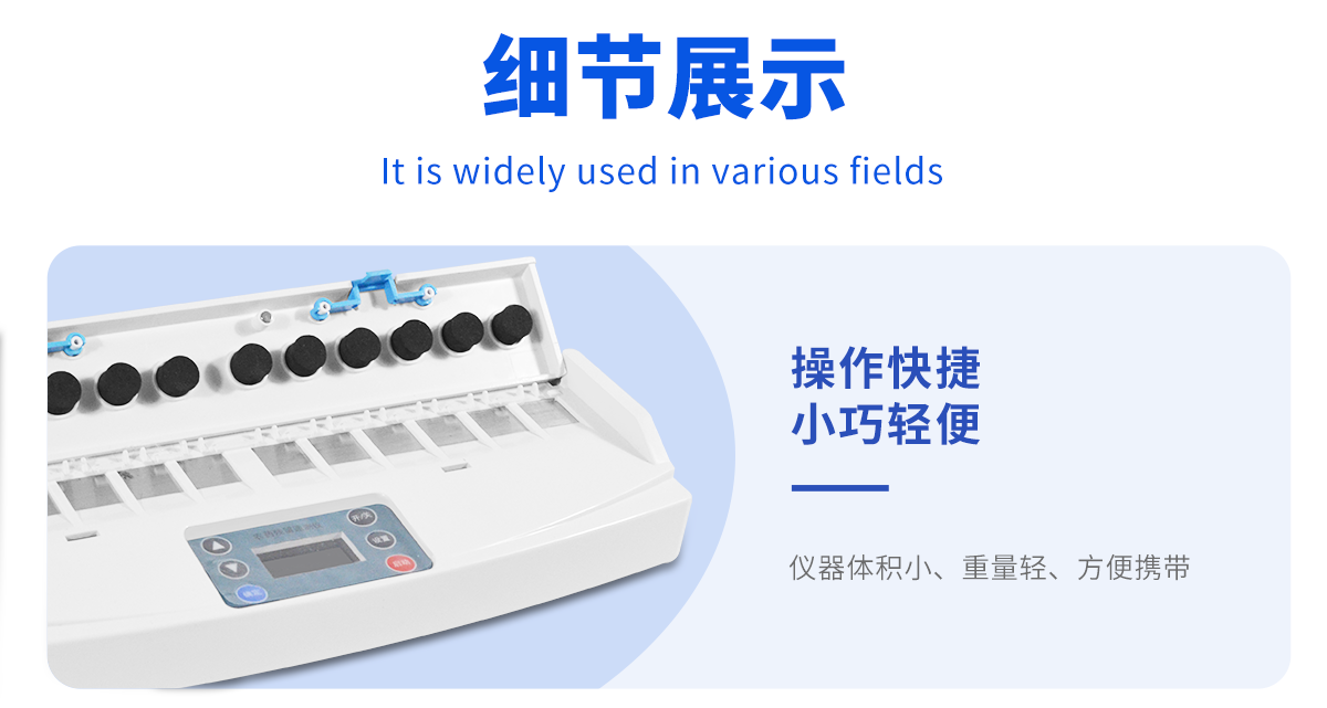 | ◆ 12通道,同時快速檢測,每個樣品由程序控制分別獨立工作,不會互相干擾 | ◆ 儀器體積小、重量輕、無配件,方便攜帶 | ◆ 操作快捷,尤其適合現(xiàn)場使用 | ◆內(nèi)置大容量電池,在無外接電源時可連續(xù)工作4小時 | ◆ 提供完備的附件配置,采用美觀、耐用的鋁合金包裝箱 | ◆ 采用新型儀器結(jié)構(gòu)設(shè)計,體積小,便于攜帶。無機(jī)械移動部件,抗干擾、抗振動,檢測精度高,儀器壽命長 |