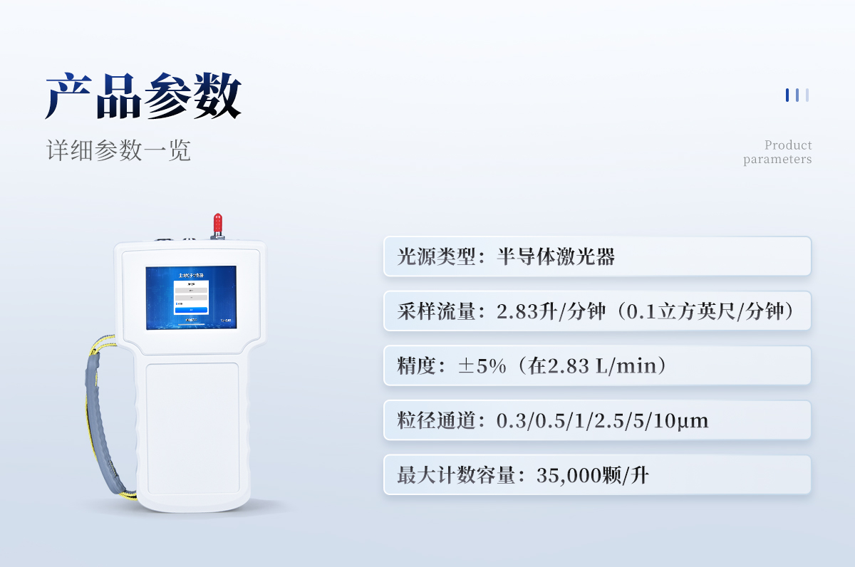 產品詳情:產品簡介: 手持塵埃粒子計數器是一種便攜式的檢測設備,專門用于快速測量空氣中的塵埃、顆粒物以及其他微小顆粒的數量和大小分布。這類儀器廣泛應用于多個行業,包括但不限于制藥、半導體制造、醫院手術室、無塵車間、空氣凈化器效果驗證等領域。 依據標準: ?符合標準:JJF1190-2008、