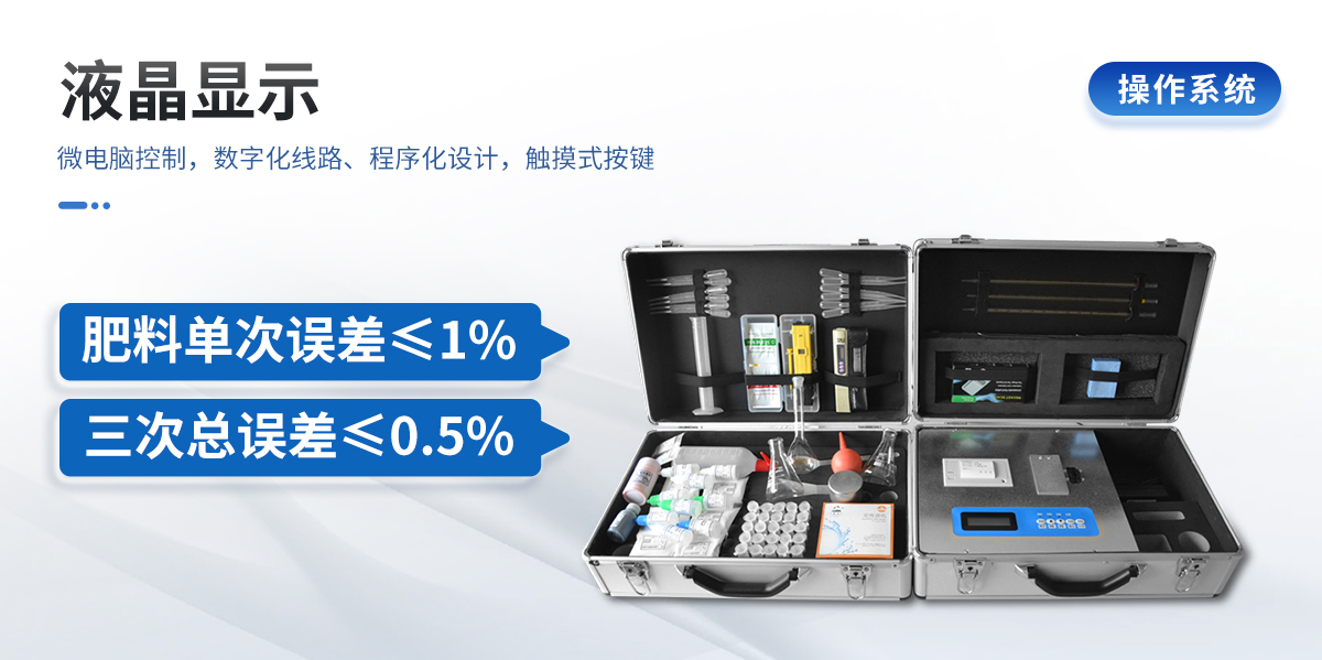 | 肥料養分專用檢測儀功能全:測試項目國內外*全(各類藥劑均可選購)。 | 配套齊全,該儀器集藥、器、儀為一體,攜帶方便,相當于一個小型實驗室,用戶只需提供蒸餾水即可在要求時間內完成全部操作。適于農業服務部門或農資經銷商鑒別肥料真假、肥料廠商肥料生產中控、農資質檢部門進行農資打假,規范農資市場。 | 性能可靠:工作穩定性優于國家標準JJG179-90指標的10倍以上,重復性達到光柵型分光光度計指標水平。 |
